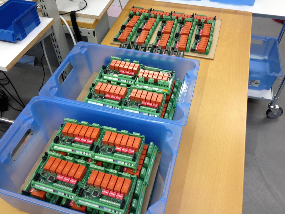 Tälle ihmelaitteelle haettiin myös patentti ja saatiinkin se. Eli myös patentti-insinöörin mielestä laite oli aivan uusi keksintö. Ja kyllä se ratkaisikin monta ongelmaa varsin edullisesti. Moduulit syntyivät nyt robottien käsissä Lahdessa Jopaco Elektronics Oy:n tiloissa. Rakentelin meille testijärjestelmän ja Maria laati siihen huikean hienon testiohjelmiston, jolla kortit testattiin ne ennen loppukokoonpanoa ja keskukseen asentamista. Ja keskuskin oli nyt varsin näppärä koota näistä korteista. Tällä tavalla tehtiin useita taloprojekteja.