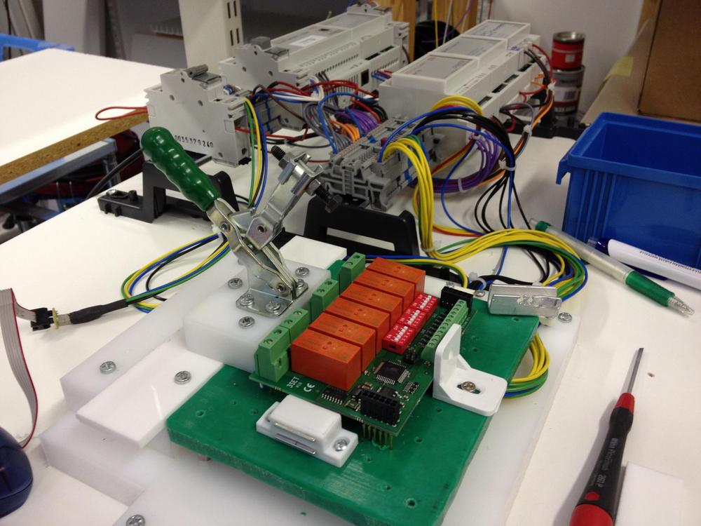 Aivan ensiksi päätimme kokeilla ihan tavallisen releen käyttämistä ohjaavana komponenttina. Siihen yhdistettiin erillisiä DIN-kiskolle asennettavia valonsäätimiä, ajastimia ja kellokytkimiä. Näin tehtiin useita projekteja. Ongelmaksi näissä kuitenkin tuli aivan mahdottoman työläs keskuksen kokoonpano. Eikä asentaminen työmaalla ollut kuitenkaan mikään helppo juttu.